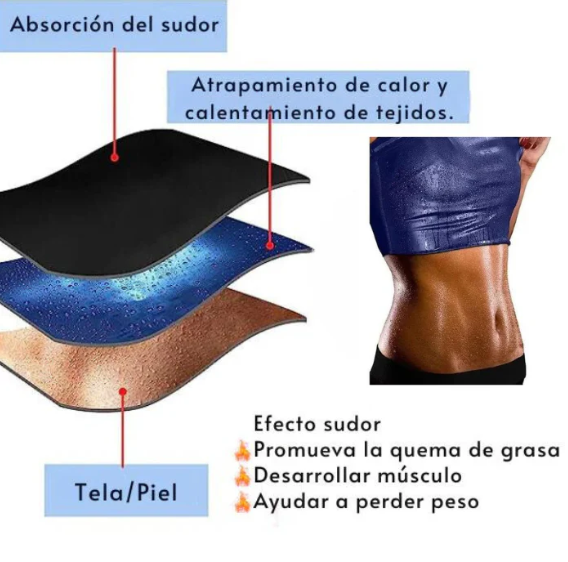 - Quema de Grasa Intensiva 🔥: Gracias a su efecto sauna, acelera la quema de calorías mientras realizas tus actividades diarias.