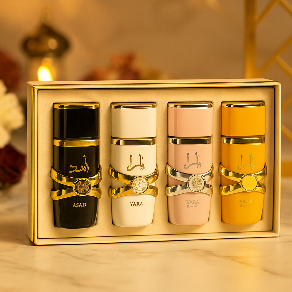 Descubre la experiencia única de la perfumería árabe con el estuche de colección Lattafa, una edición limitada que reúne 4 fragancias de lujo en un solo set. ¿Lista para encontrar tu aroma ideal para cada momento?