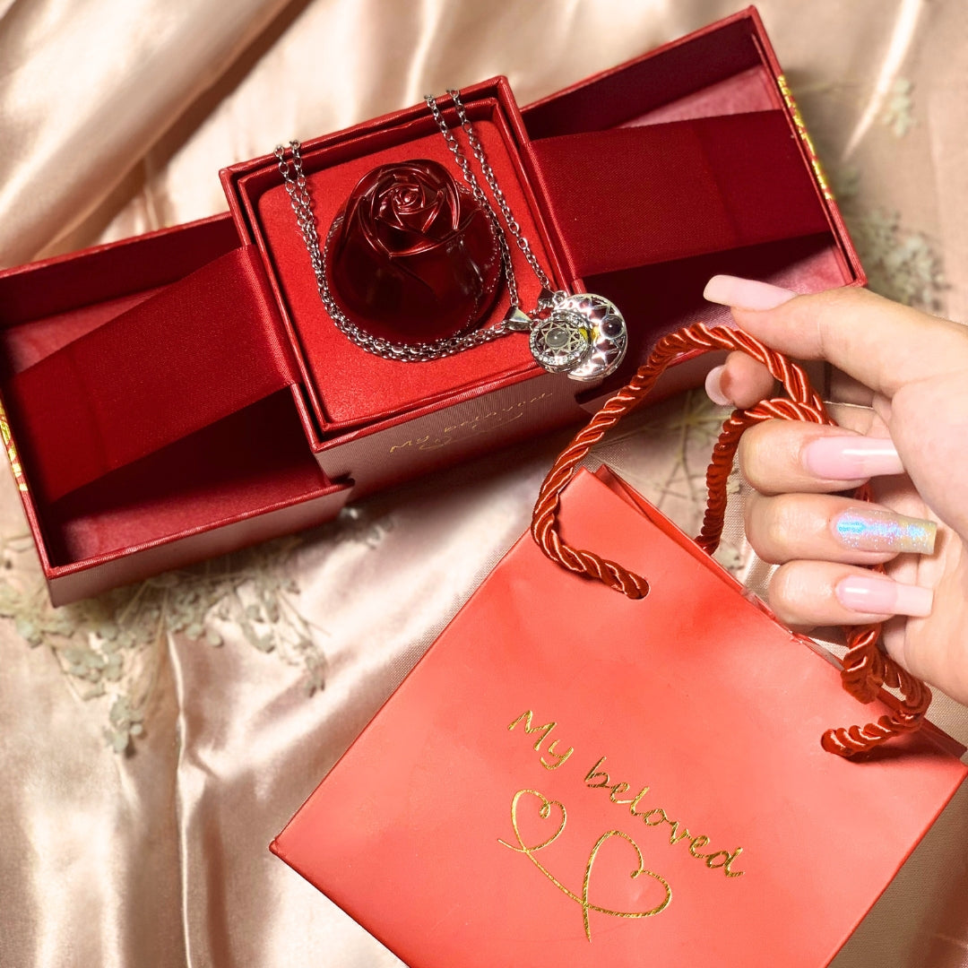 ✅Caja en forma de rosa: La presentación incluye una caja de joyería tipo rosa que realza la elegancia y simboliza la belleza del amor.