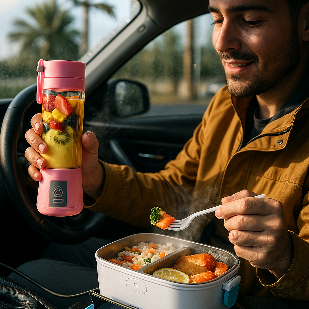 Combo lonchera eléctrica y licuadoraIncluye:1 Licuadora Portátil Recargable con Carga Lonchera Térmica Eléctrica Portátil