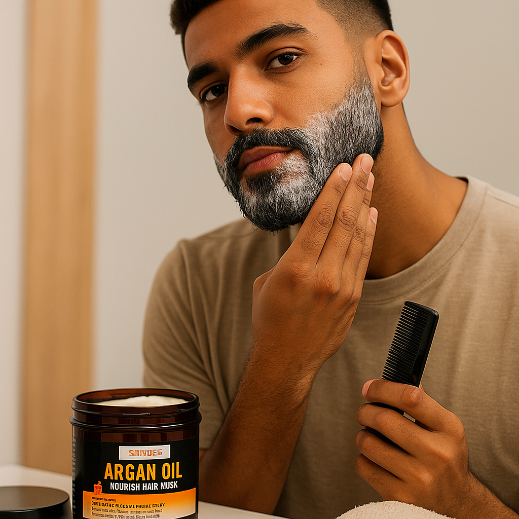 Suave, Sedoso e Impresionante ✨: Esta mascarilla está específicamente diseñada para mejorar la textura y la salud de tu cabello. Los aceites naturales 🌱 trabajan para revivir su belleza natural. ¿El resultado? Cabello brillante y voluminoso, fácil de manejar y lleno de vida 🌟. Además, ¡es ideal como acondicionador de barba! Deja tu barba suave y libre de grasa o residuos 💪.