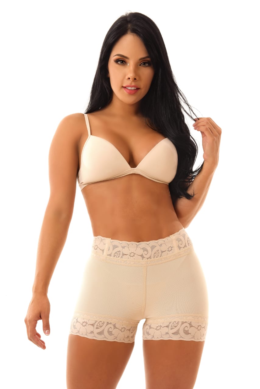 Este short ofrece un efecto instantáneo de glúteos firmes y redondos, además de un control de abdomen bajo que te ayuda a lucir más estilizada. Diseñado con una elasticidad suprema y tecnología anti-celulitis, este short se convierte en la prenda ideal para realzar tu figura de manera natural.